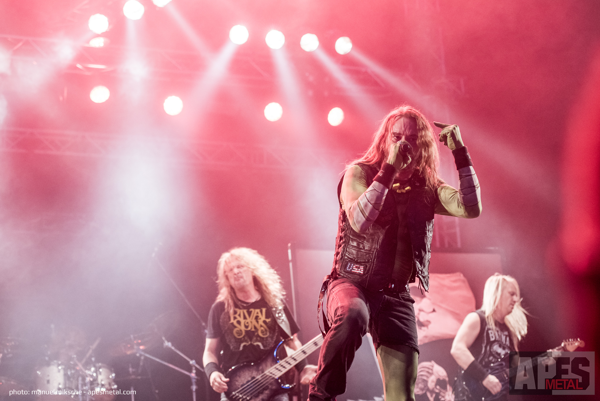 Nach Skull Fist gab es im Zelt eine kleine Völkerwanderung, da man sich die nachfolgende Band auf keinen Fall entgehen lassen durfte! Im Anschluss an eine Runde Speed Metal war etwas Glam genau das Richtige. Kissin‘ Dynamite, die ursprünglich aus Schwaben kommen, sind dafür bekannt, ein Gute-Laune Garant zu sein. Deshalb war ganz klar, was gleich auf der Bühne passieren würde. Laut, schrill und auffallend erschienen sie und lösten erst einmal Jubelchöre aus. Obwohl die Glam Metaller eine verhältnismäßig junge Band sind, haben sie sich in den vergangenen Jahren eine stabile Fanbase aufgebaut, auf die sie definitiv stolz sein können. Und genau das zeigt sich auch auf dem W:O:A einmal öfter. Ihr Auftritt war im Grunde eine reinste Party, auf der tolle Musik, jede Menge Spaß und natürlich auch etwas nackte Haut geboten war (eine hübsch anzusehende, etwas spärlicher bekleidete junge Dame erschien zwischendurch auf der Bühne und tanzte mit der Band bzw. hauptsächlich mit Sänger Hannes). Starke Songs gespielt von einer talentierten Band mit einem Sänger, der mit einer Wahnsinns-Stimme gesegnet wurde, für die manch einer töten würde. Hier besteht auf jeden Fall Wiederholungsbedarf!