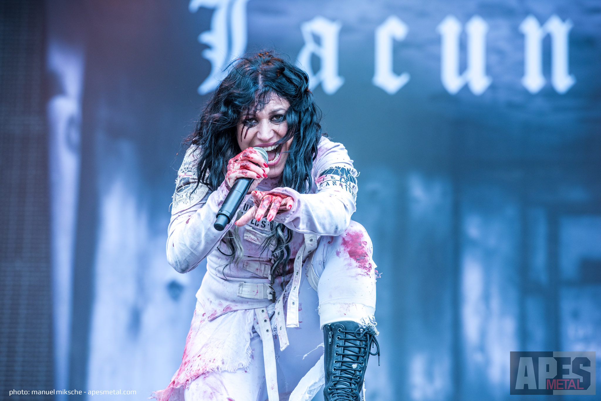 Pünktlich um 12 Uhr war es an der Zeit für Lacuna Coil - wer den italienischen Gothic Metallern auch immer diesen Zeitslot gegeben hat… Trotz der frühen Zeit hatten schon einige Metalheads ihren Weg zum Infield gefunden und hatten richtig Bock auf gute Musik. Genauso wie die Band selbst: Cristina Scabbia, Andrea Ferro und Co. legten mit voller Power los und sahen dabei schaurig schön aus. Ihre derzeitigen weißen Bühnenoutfits, die blutverschmiert an Zombies in Zwangsjacken erinnern, sind ein echter Eyecatcher und schön anzusehen. Aber nicht nur optisch gibt die Band was her, auch musikalisch war es wieder eine reine Freude, ihnen zuzuschauen. Ihr Sound, der stark vom Gothic Metal geprägt ist, gleichzeitig aber deutlich härtere Passagen aufweist, wird von der Kombination aus Sängerin plus Sänger ideal ergänzt und verleiht der Band ihren Charme. Um ältere wie jüngere Fans gleichermaßen abzuholen, performten sie eine gute Mischung an Songs, wobei Klassiker wie „Heaven’s a lie“ oder das Depeche Mode Cover „Enjoy the Silence“ nicht fehlen durften. Trotz erster Regentropfen und früher Uhrzeit ein tolles Stück der Italiener.
