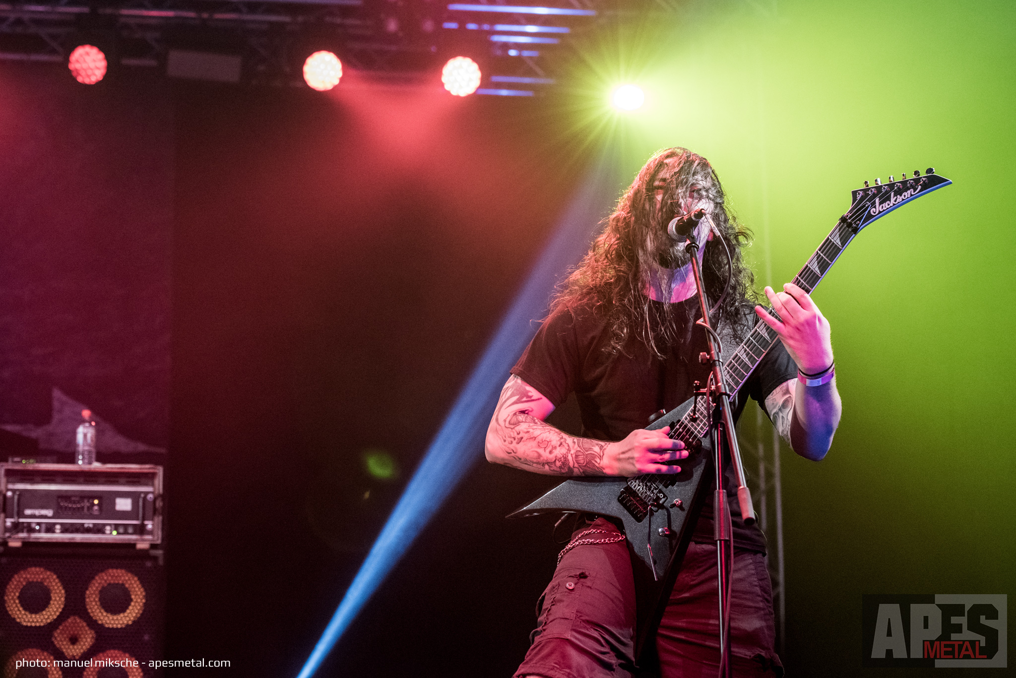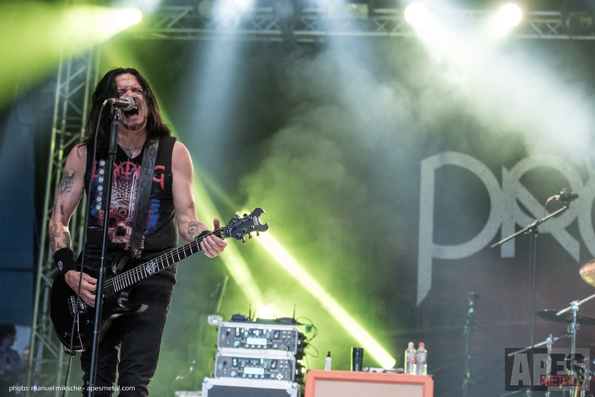 Eröffnet wurde das Festival für uns von Flotsam and Jetsam im Zelt auf der Headbanger Stage, die bereits vor Beginn ihrer Show für einige Lacher sorgten. Sänger Eric A.K. – verkleidet als grüner Drache – bespaßte die Menge und sorgte für gute Stimmung. Dabei ließ er kaum etwas aus: er hüpfte, tanzte und poste herum – und das Publikum mochte es. Man sollte vielleicht dazu sagen, dass zu diesem Zeitpunkt kaum jemand klar war, wer da gerade auf der Bühne herumturnte. Als die Band ein paar Momente später dann allerdings loslegte, war alles klar. Fans von gutem, altem Thrash und Speed Metal aus den 80er Jahren kamen voll auf ihre Kosten. Die Amerikaner aus Phoenix, Arizona performten eine klassische Flotsam and Jetsam-Show, die ein guter Start in ein tolles Festival war!