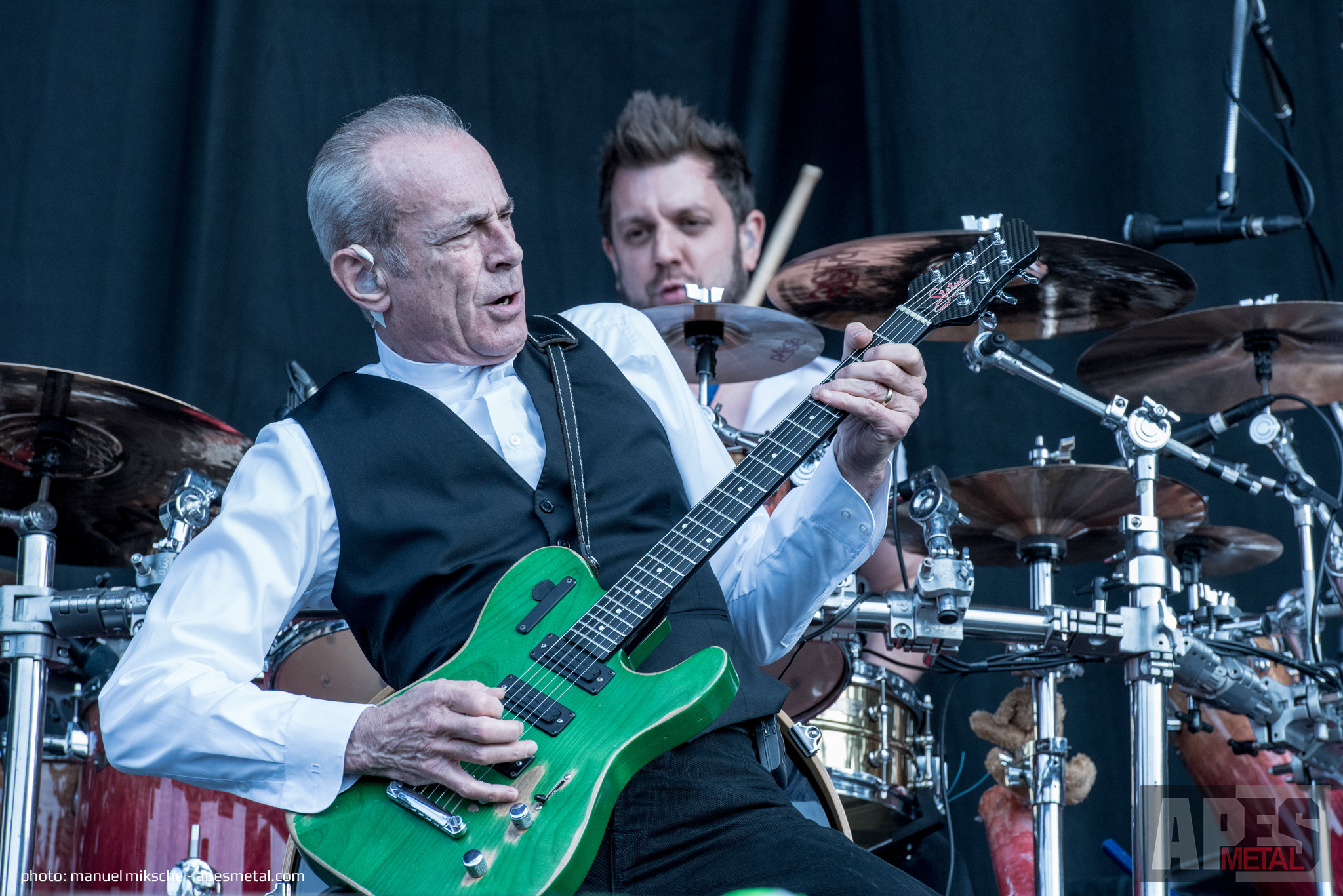 Es ist wohl das Jahr der Legenden in Wacken, denn unser nächster Act auf der Harder Stage gab seiner heutigen Band bereits 1968 ihren Namen und kann mittlerweile auf beachtliche 27 Studioalben zurückblicken. Eine wirklich stolze Musikgeschichte, die Vincent Furnier alias Alice Cooper auszeichnet. Seine Liebe zur Musik ist auch weiterhin ungebrochen, denn erst vor einer Woche wurde das eben genannte 27. Album „Paranormal“ veröffentlicht. Gut getimt mit seinem Auftritt auf dem W:O:A! Grundsätzlich laufen seine Shows immer relativ ähnlich ab. Er schmeißt sich in ausgefallene Outfits, toupiert seine Haare und kleistert sich mit viel Make-Up voll, um seinem Shock-Rocker Image schön zu entsprechen. Auf der Bühne ist er ganz in seinem Element, huscht umher und erzählt dabei mit seinen Songs die unterschiedlichsten Geschichten. Für den Show-Effekt wird auch schon einmal eine Nita Strauss (aber auch andere Bandkollegen) herum geschubst. Die nimmt es aber mit Humor und kontert mit einem sensationellen Gitarren-Solo bei dem so manchem Profi die Kinnlade herunterfallen würde. Damit ist Nita ein doppelter Gewinn für die Band: Verdammt gutaussehen und unglaublich talentiert. Das Publikum sah dies wohl genauso, da einfach jeder Song der Shock-Rocker extrem gefeiert wurde. Da war es ganz egal, ob „Poison“, „No More Mr. Nice Guy“ oder „School’s Out“ gespielt wurde, das Publikum sang aus voller Kehle mit und ließ sich dabei von der angenehmen Abendsonne anscheinen. Ein starker Auftritt des Rockers, der mit seinen scheinbar zeitlosen Songs sehr begeistert und wahrscheinlich auch in 10 Jahren immer noch genauso geile Shows abliefern wird wie heute.